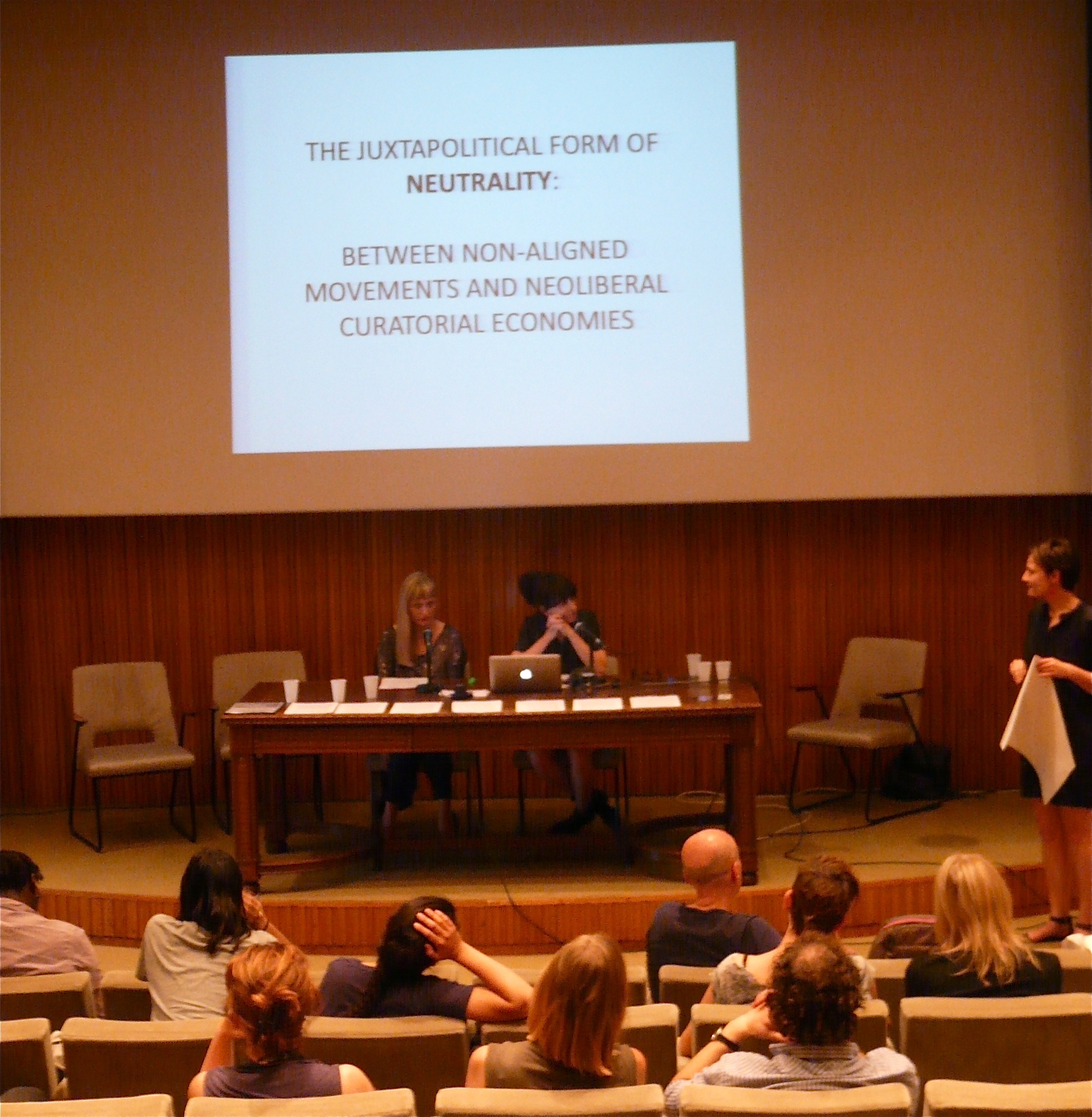 Belgrade-based curator and critic Jelena Vesic and I are working on a new research and performance project exploring the concept of ‘neutrality’ or ‘neutralisation’ in terms of its use in political and aesthetical position-taking within different international relations, especially as a response to discrepancies of power. A first stage of Notes was performed for comment at the Museum of Yugoslav History as part of at Travelling Communique, 2014, reinvestigating the legacies of the Non-aligned Movement.